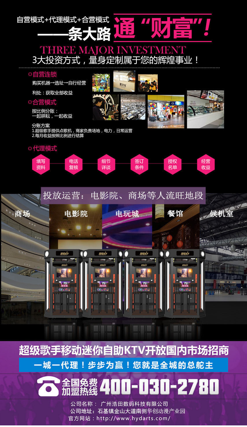 廣州浩田數碼科技是一家集數碼軟件開發,高科技產品研發實力供應商!擁有自己的生產廠房設備,主營產品為超級歌手點唱機、酒吧飛鏢機、自助證件快照機、自助復印機等的生產制造為一體的現代化高科技綜合性企業。公司以“引導娛樂創意新潮流、創造娛樂文化新理念”為宗旨。以“客戶的滿意”為目標,以質量求發展,以品牌為中心,以研發為動力,用高度的敬業精神和專業的服務水準,準確而直接的把握市場方向,追求圓滿、創造深度。 “科技創新求發展”,是浩田執著的追求。公司現向面全國尋求合作伙伴,合作模式包括:代理加盟,工廠批發,工廠定制、OEM貼牌等。歡迎各界朋友蒞臨參觀、指導和業務洽談,讓我們最終實現共贏!