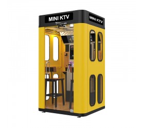 產品特點:軍營唱吧迷你版長寬高尺寸:1400mm*1220mm*2520mm,它的外觀設計非常有特色,顏色主打黃色,亮眼且時尚,兩側邊分別有4個橢圓形,橢圓形里面裝了隔音玻璃,內飾更是溫馨豪華,帶有通風系統和燈光系統,特加了空調系統,雙耳機,雙話筒,雙座椅,適用于:圖書館、黨建室、軍營、單位、企業公司等場所。
