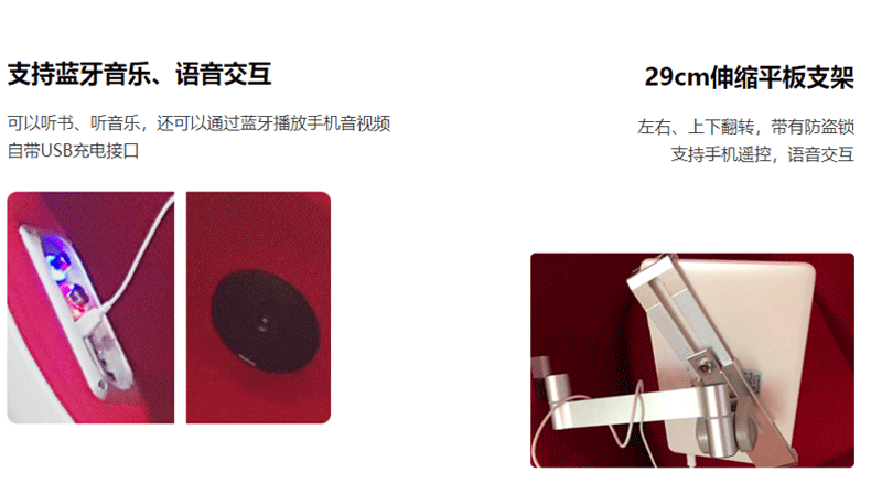 產(chǎn)品特點:浩田視聽休閑太空艙可以閱讀數(shù)字書報刊,也可以聽書、聽音樂,也可以看視頻課件等,還可以通過藍牙播放手機音視頻。讓讀者在這又酷又炫的太空艙體驗感知新科技、新數(shù)字、藝術(shù)化的數(shù)字體驗空間。