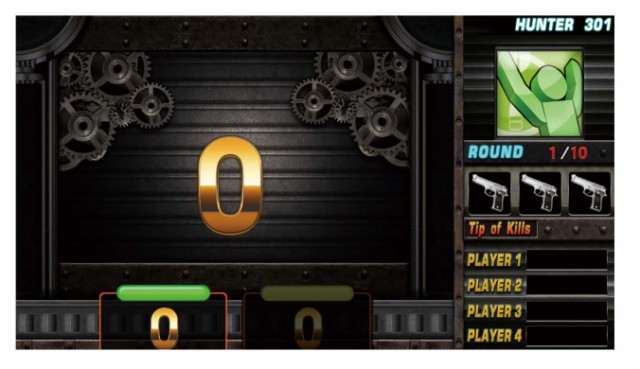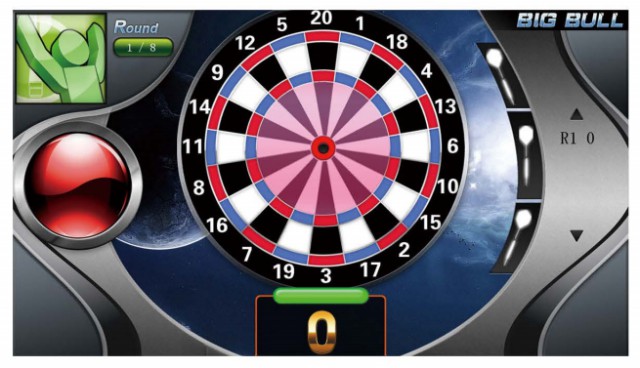 此游戲可投擲飛鏢以槍的圖案顯示, 屏幕中間出現彩色豎條表示玩家當前分數。
