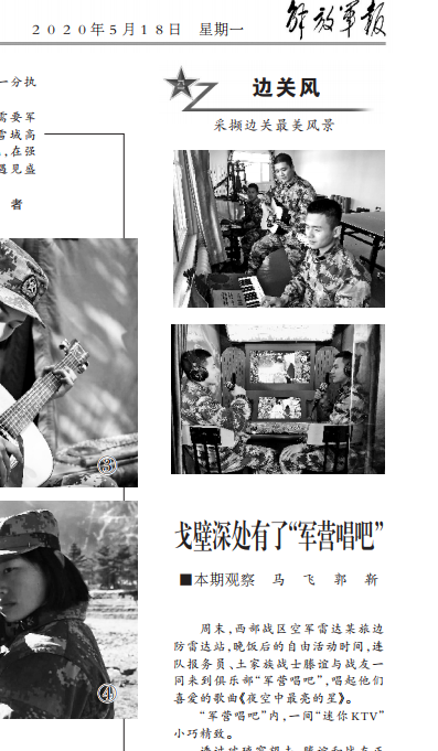 軍營里有一些音樂迷。在擁有手機網絡信號的營中,在業余時間,我們可以選擇手機沖浪作為一種休閑方式,但是手機不能解決官兵的所有精神需求。一些軍官也渴望向軍營增加一些文化和娛樂硬件設施。